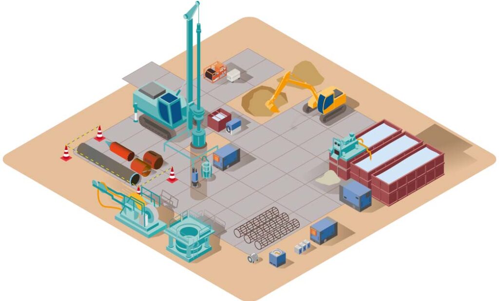 スライムポンプ2次スライムの除去により、コンクリート杭の品質向上に貢献。