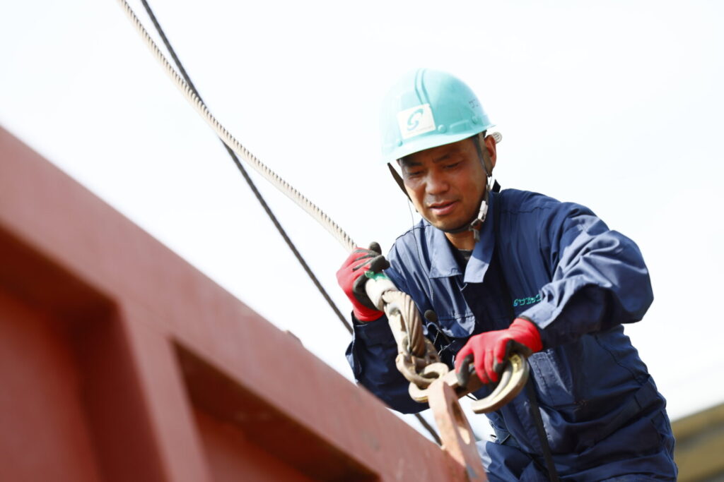 可搬型発電機整備や修理、クレーンを操作し商品の積み込みや引き取りを行っています。